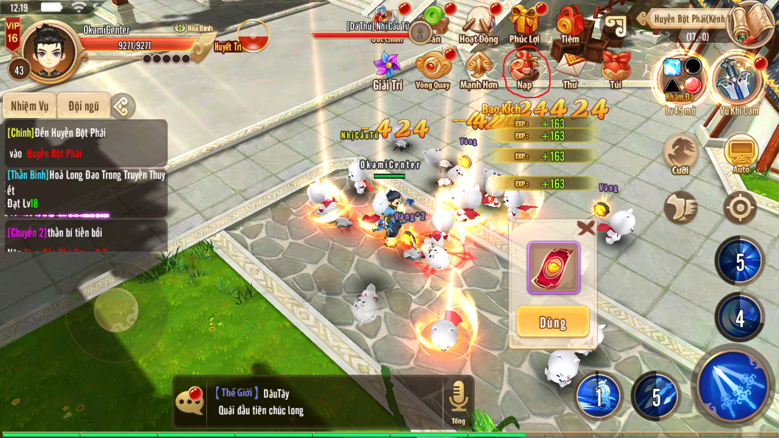 Vào game bấm vào icon Nạp. Bấm vào Nạp rồi chọn gói Vàng hoặc Long Hồn muốn nạp.