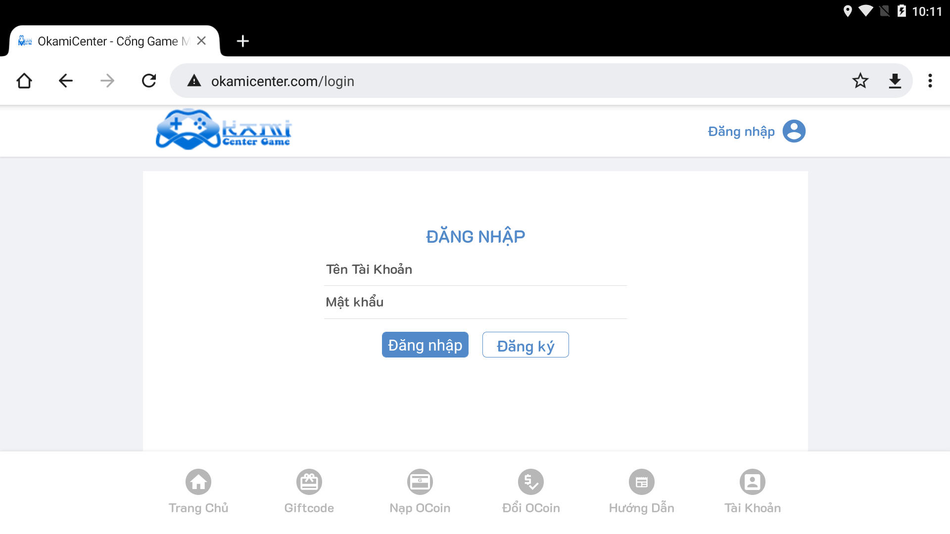 - Bước 1: Truy cập vào địa chỉ http://okamicenter.com/napxu và đăng nhập tài khoản