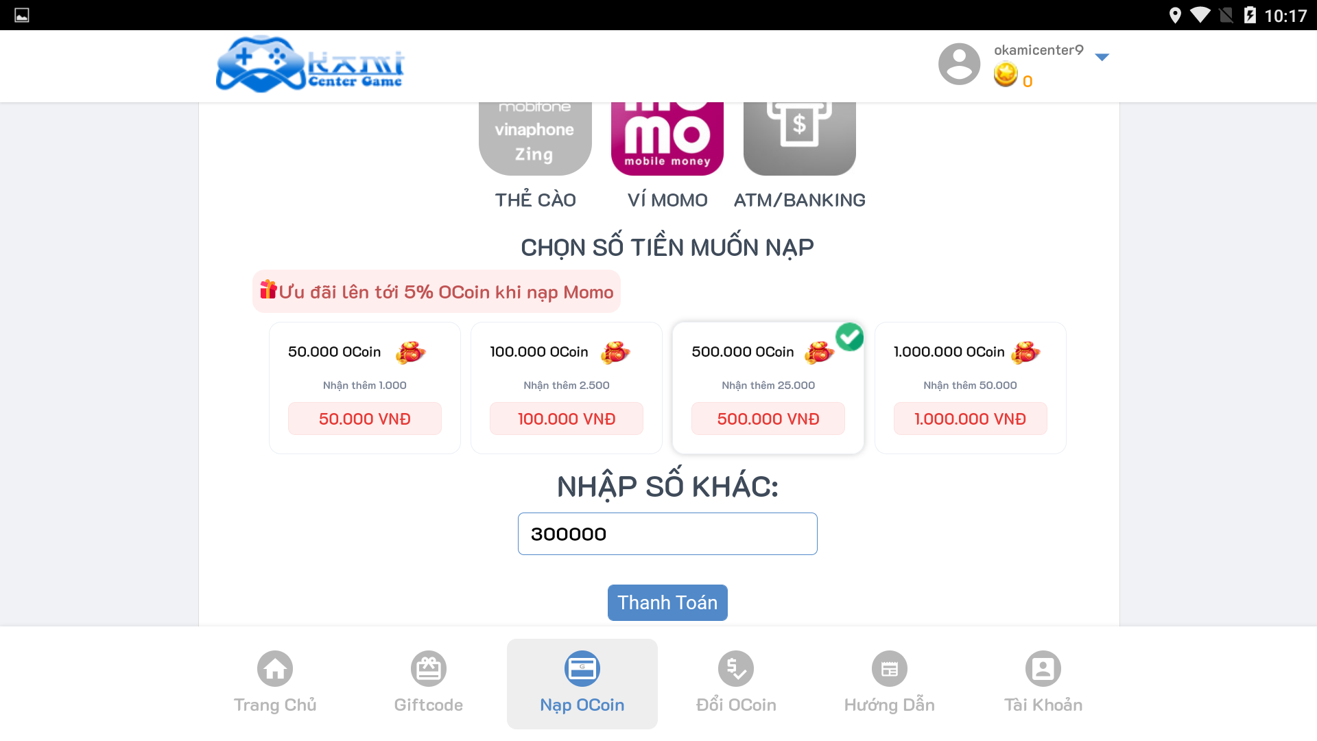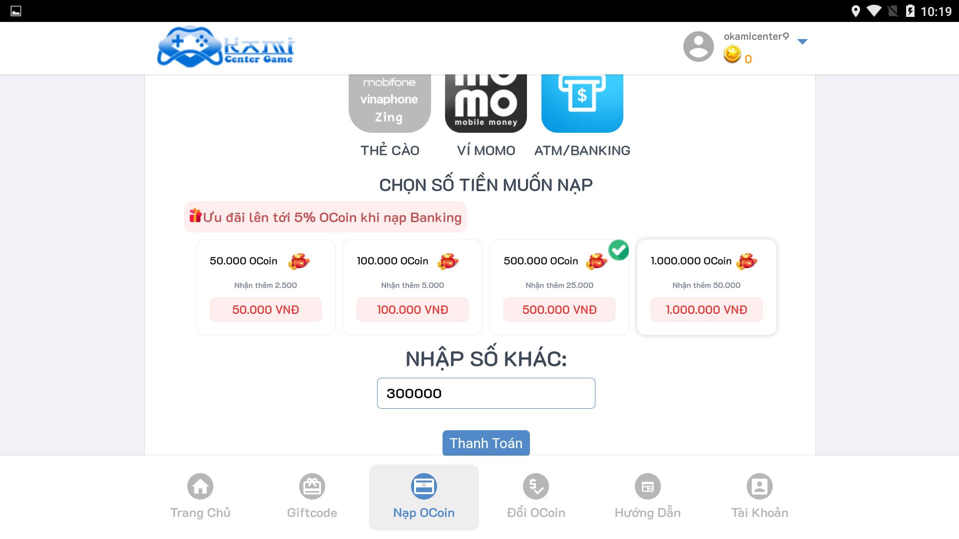 Bài viết dưới đây sẽ hướng dẫn bạn cách nạp OCoin để chơi các tựa game trên OkamiCenter.