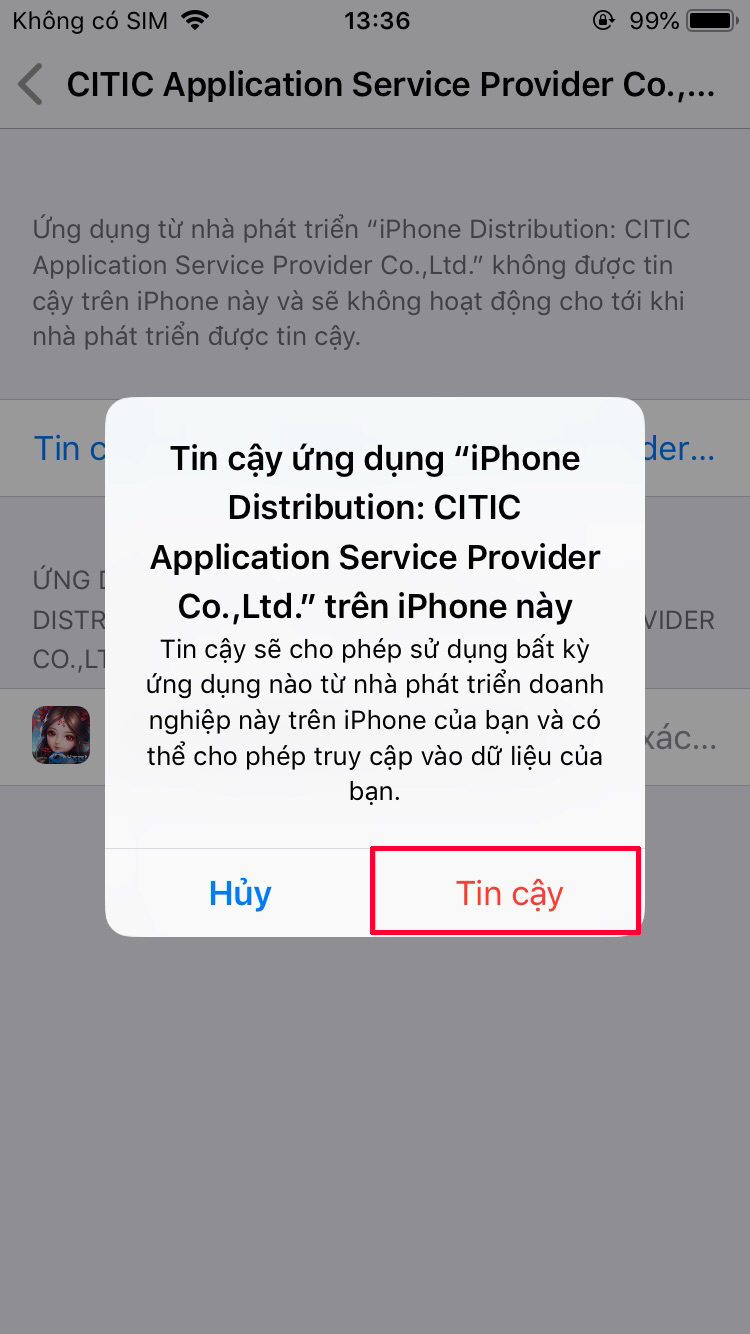 - Bước 2: Sau khi tải game thành công Vào Cài Đặt -> Cài đặt chung -> Quản lý thiết bị -> Tin Cậy. Ok vậy là xong vào game chiến: