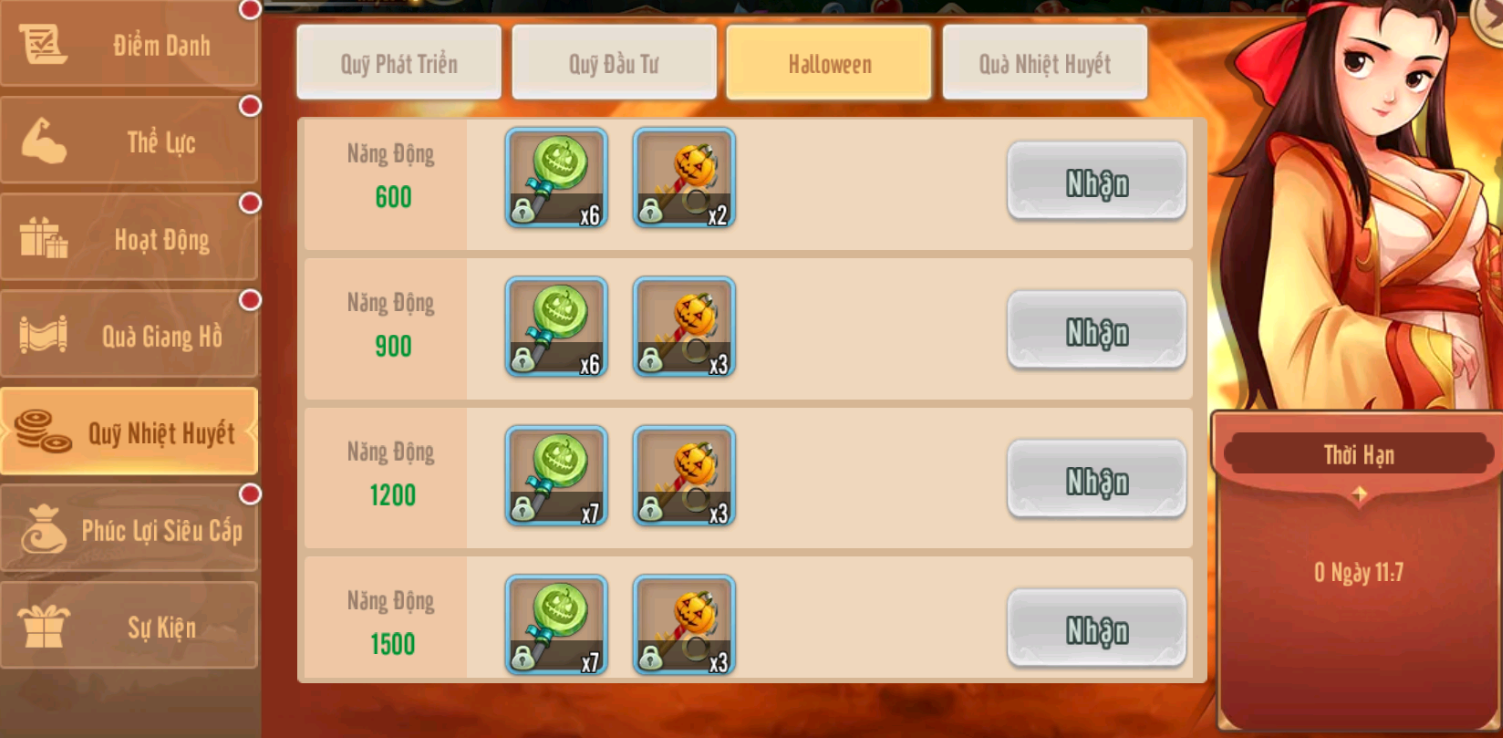5.Sự kiện Halloween gia các hoạt động ingame tích lũy năng động nhận vật phẩm đổi quà từ 5h 31/10 đến 5h 3/11 (làm mới mỗi 24h)
