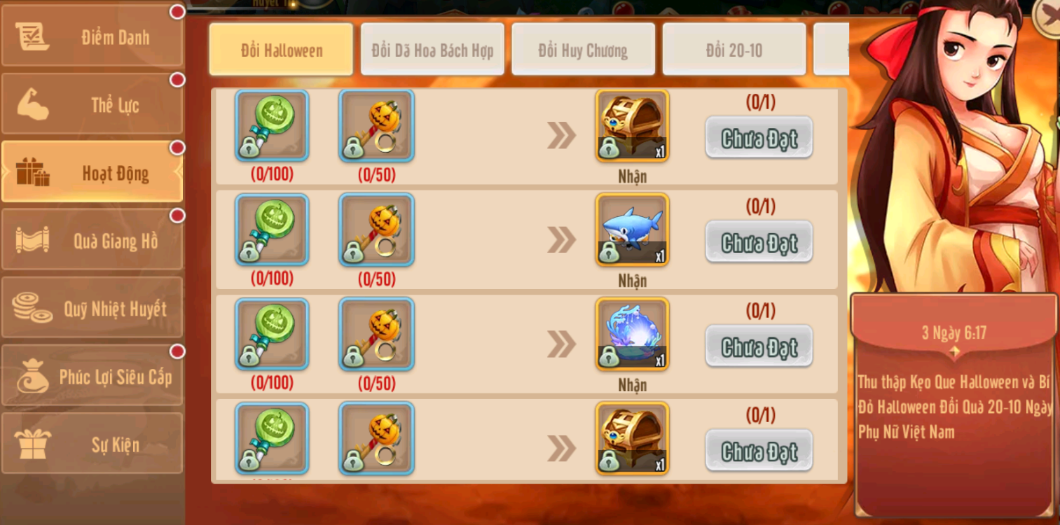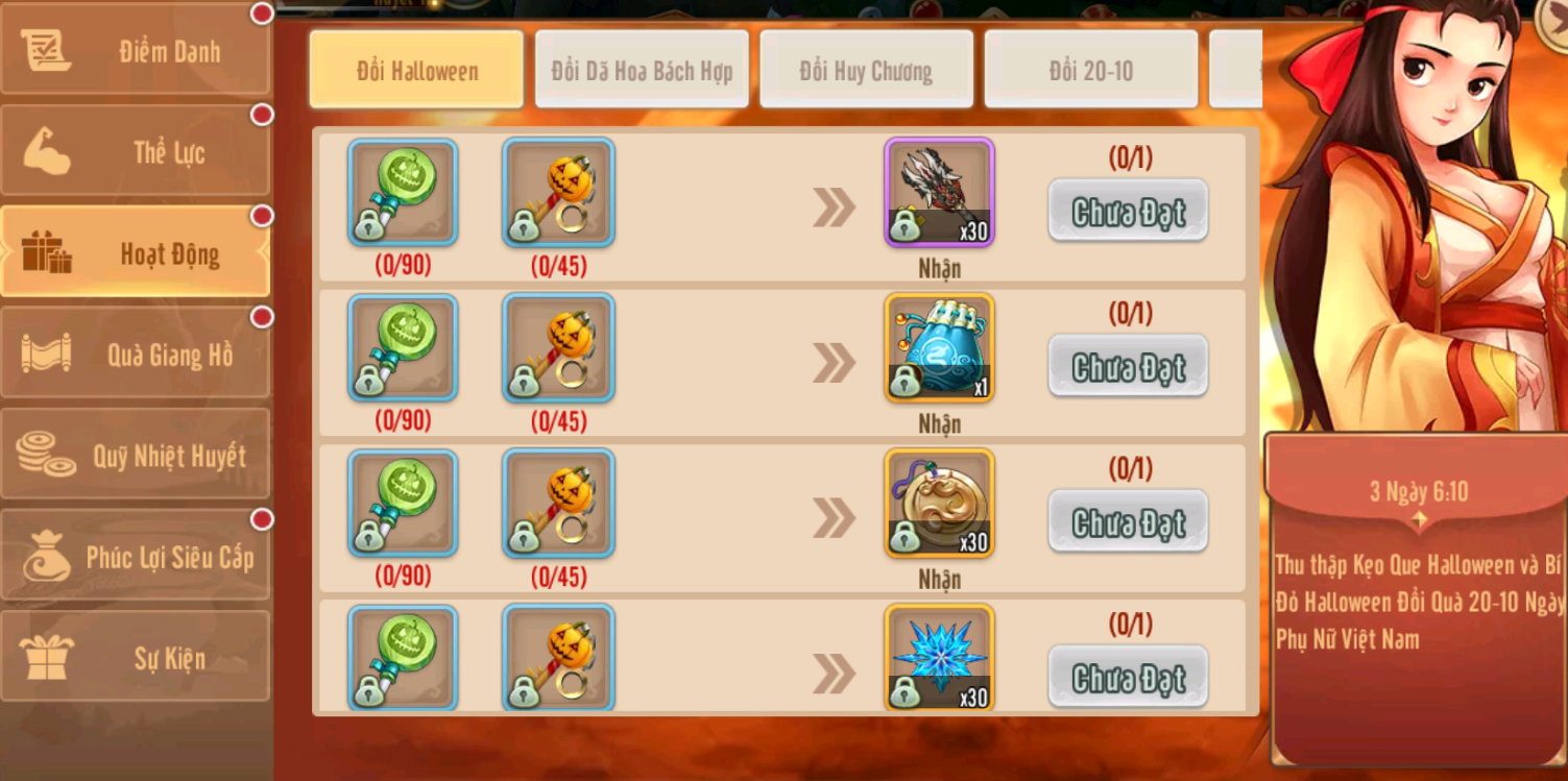 4.Sự kiện đổi quà Đổi Halloween nhận vật phẩm hiếm tại phúc lợi từ 31/10 đến 3/11