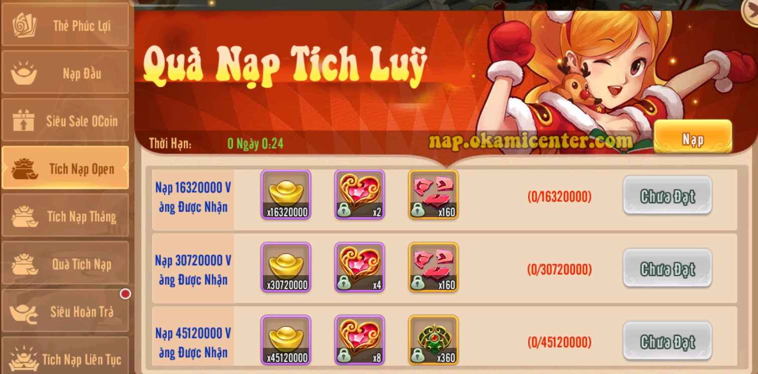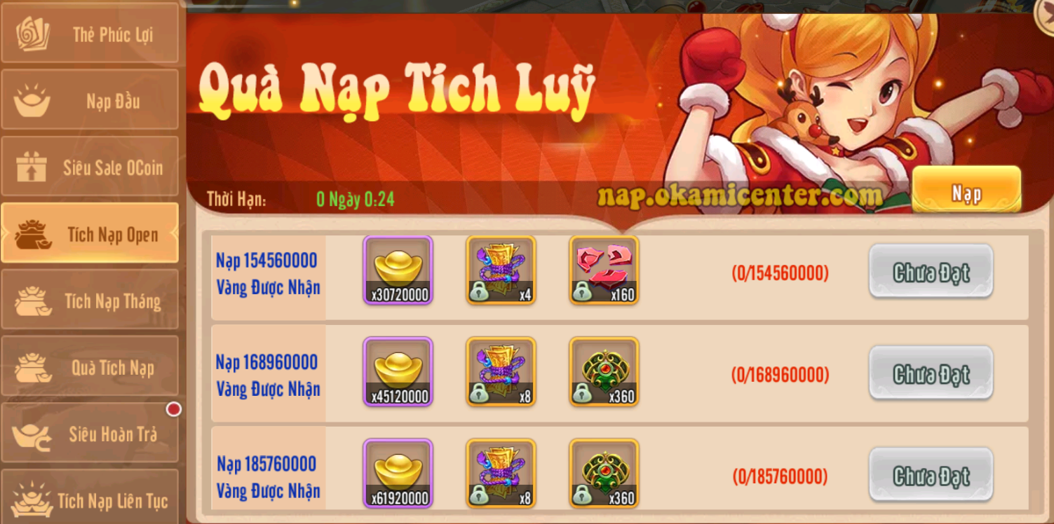 Siêu Hoàn Trả: tích nạp Vàng 24.000.000 nhận 408.000.000 Vàng Khóa và 4.500 Xu Okami từ 02/09 đến 08/09