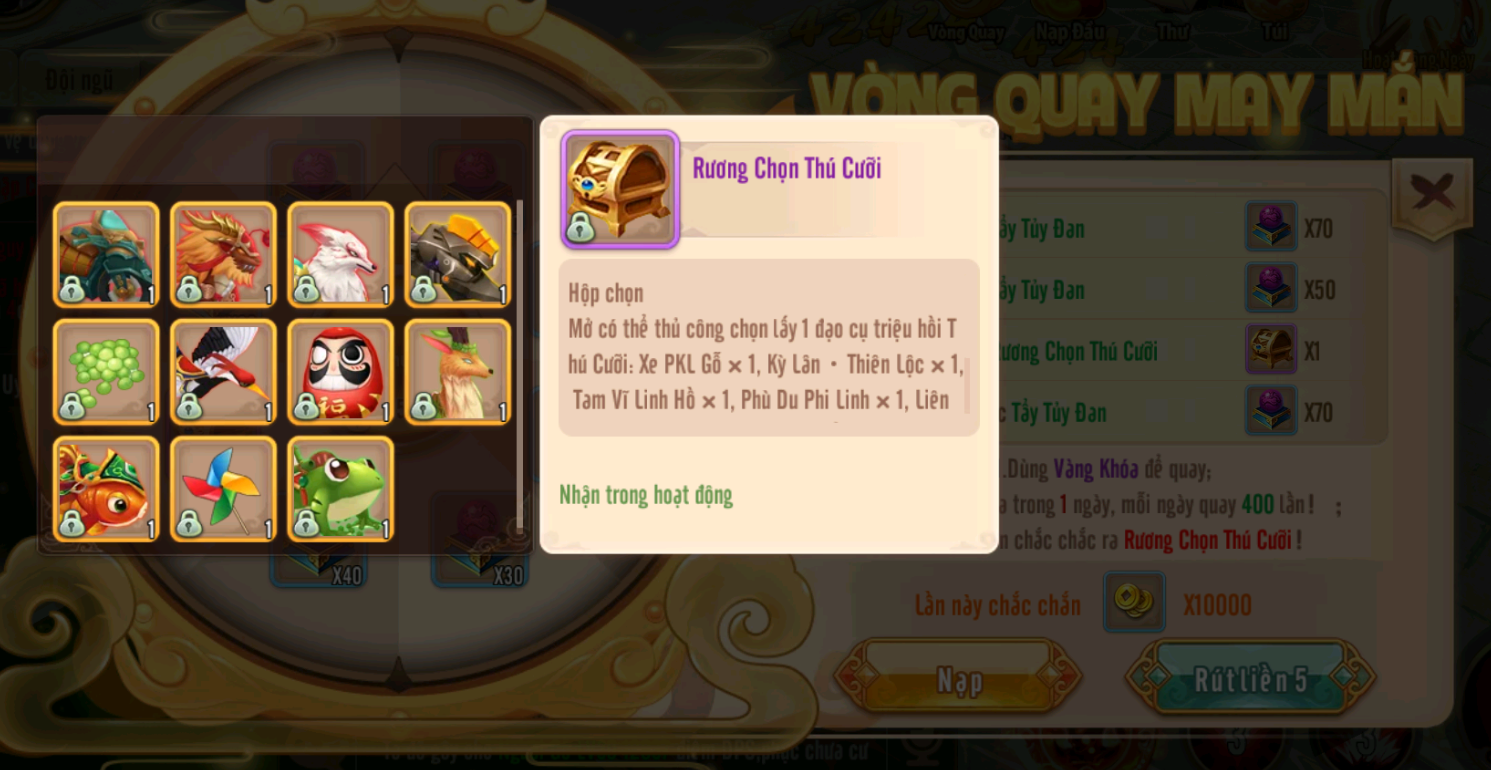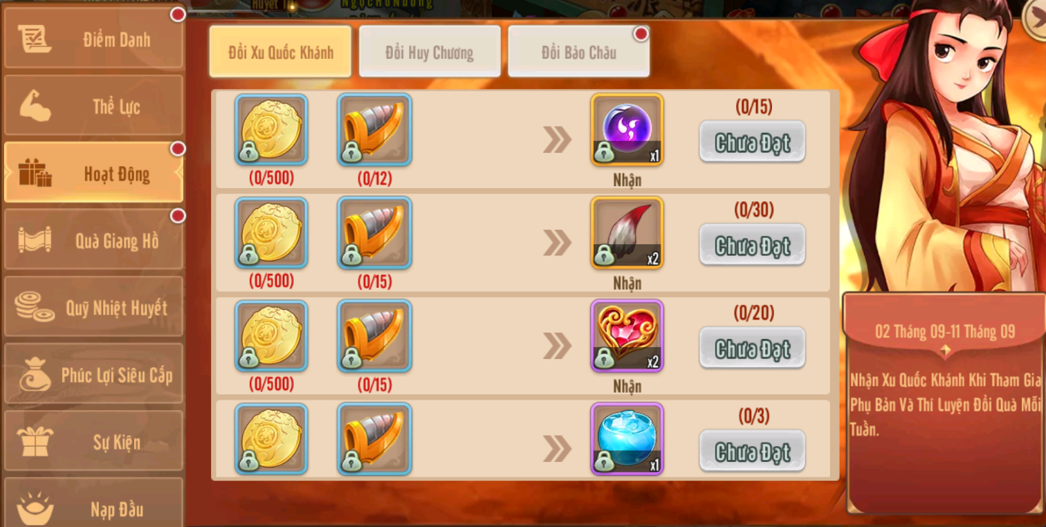 Sự Kiện Đổi Xu Quốc Khánh nhận các nguyên liệu quý hiếm tăng lực chiến