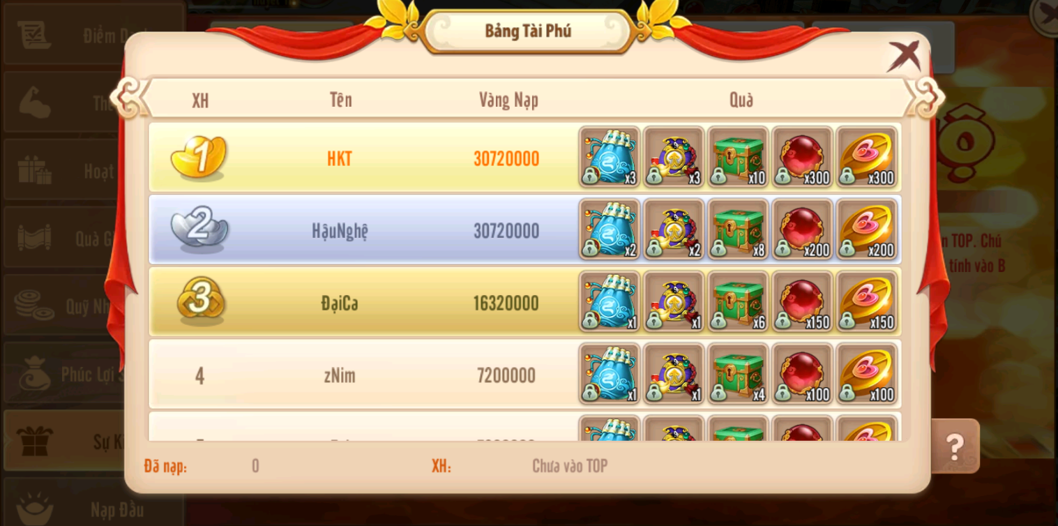 Sự Kiện BXH NẠP Vàng