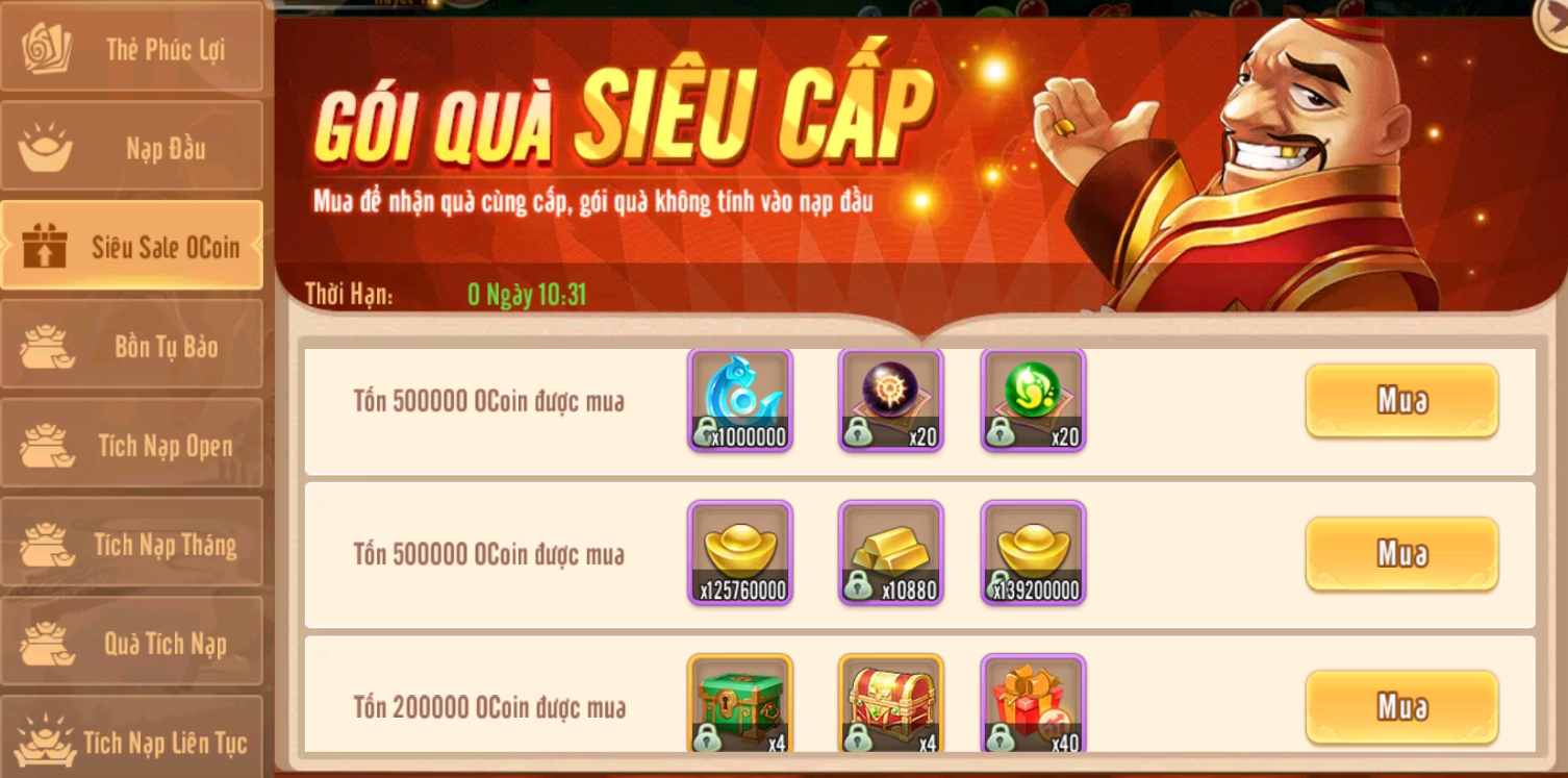 Sự Kiện Quà Siêu Hiếm Khuyến Mãi Các Gói Quà Hot mỗi ngày từ 27/01 đến 02/02. Lưu ý mua gói quà bằng OCoin không tích lũy vào sự kiện nạp vàng, được tích nạp tri ân vip.