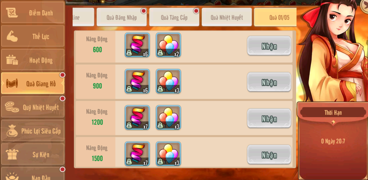 5.Sự kiện Quà 1/5 tham gia các hoạt động ingame tích lũy năng động nhận vật phẩm đổi quà từ 1/5 đến 5h 04/05