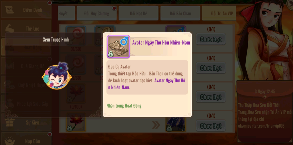 4.Sự kiện Quà 1/6 tham gia các hoạt động ingame tích lũy năng động nhận vật phẩm đổi quà từ 1/6 đến 5h 03/06