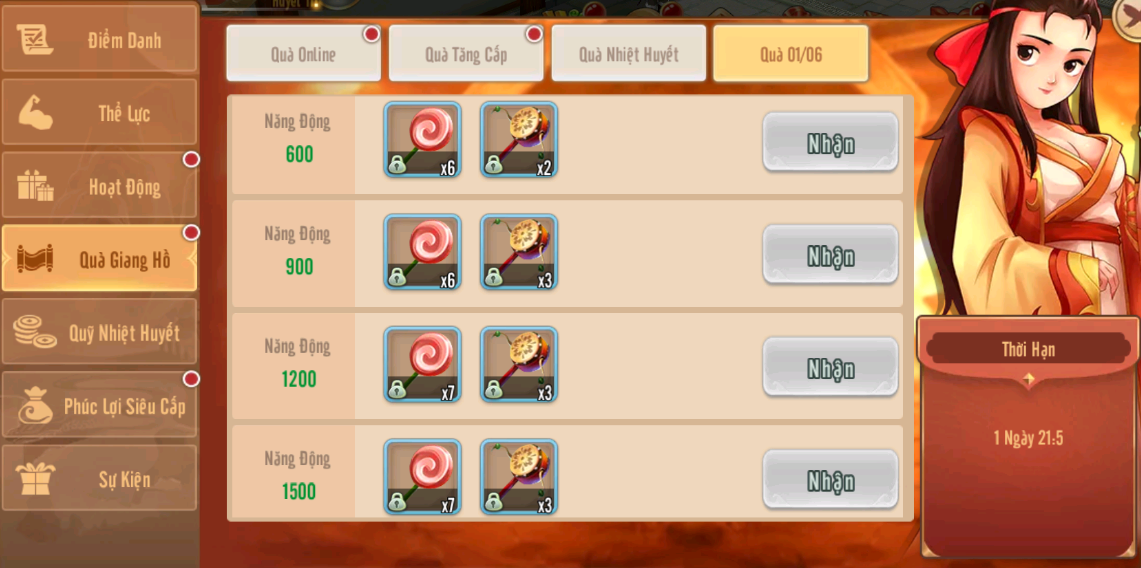 1.Sự kiện tích Nạp: nạp vàng là có quà,quà nạp được làm mới mỗi ngày từ 01/6 đến 03/06