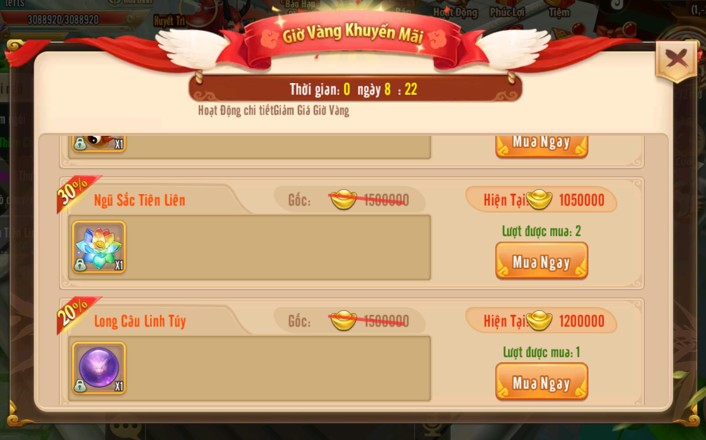 8.Sự kiện Giờ Vàng Giảm Giá mở bán giảm giá các vật phẩm quý hiếm trong thời gian ngắn hạn từ 28/9 đến 29/9